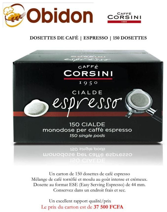 Un carton de 150 dosettes de café espresso torréfiées et moulues au goût intense et crémeux.