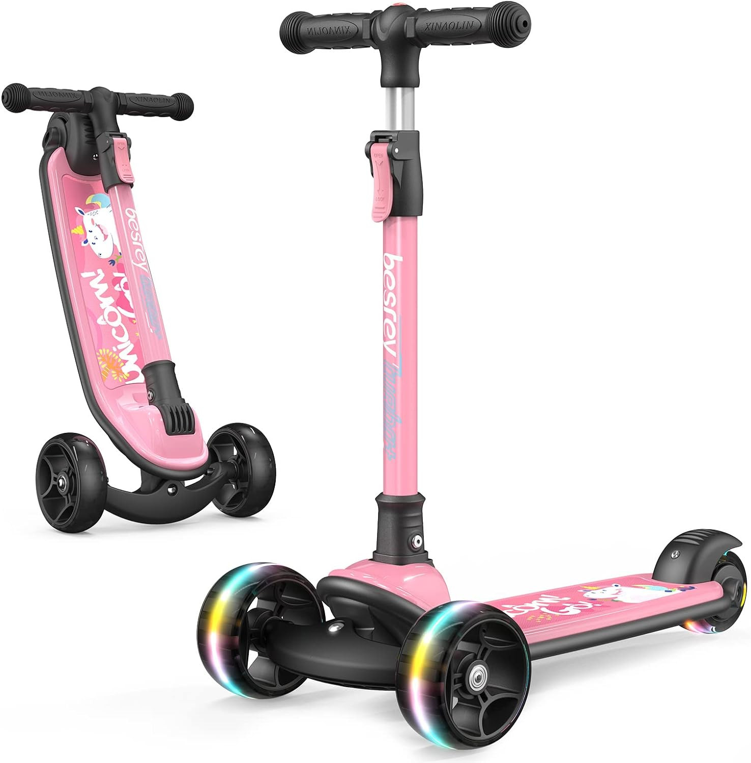 besrey Trottinette Pliable pour Enfant de 2 à 10 Ans, Trottinette Enfant 3 Roues débutante avec Roues Lumineuses, Hauteur réglable