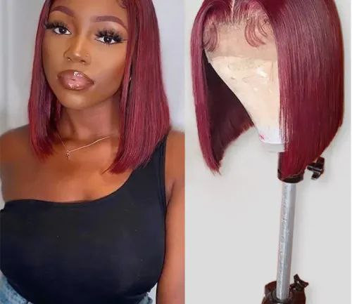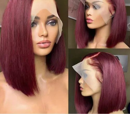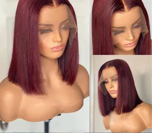 Perruque de couleur de haute qualité 99J Bob Wig 13X4 Perruque avant en dentelle Bourgogne Bob Wig