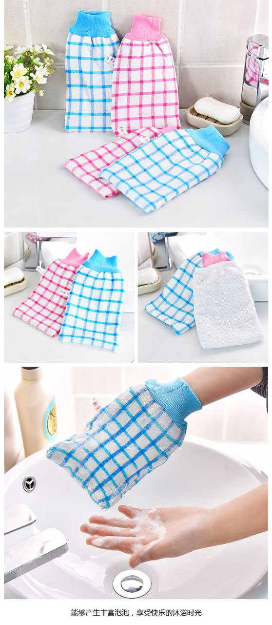 Serviette de bain à carreaux, drap de bain en boue et cendre, gants de gommage pour le dos, gants de gommage pour la maison