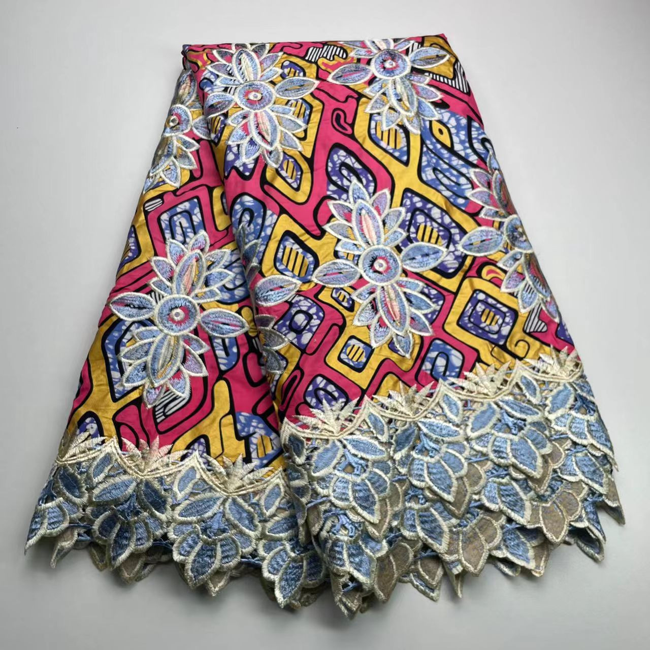 Tissu de dentelle de broderie aux bord fleuris de cire africaine de coton a la mode par coupe de 6 yards