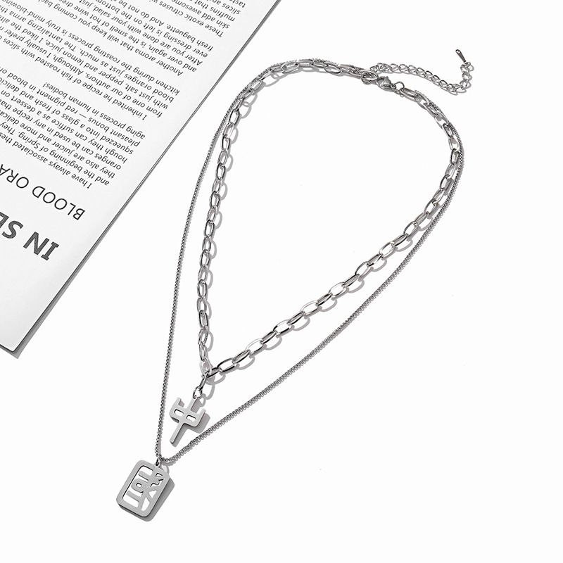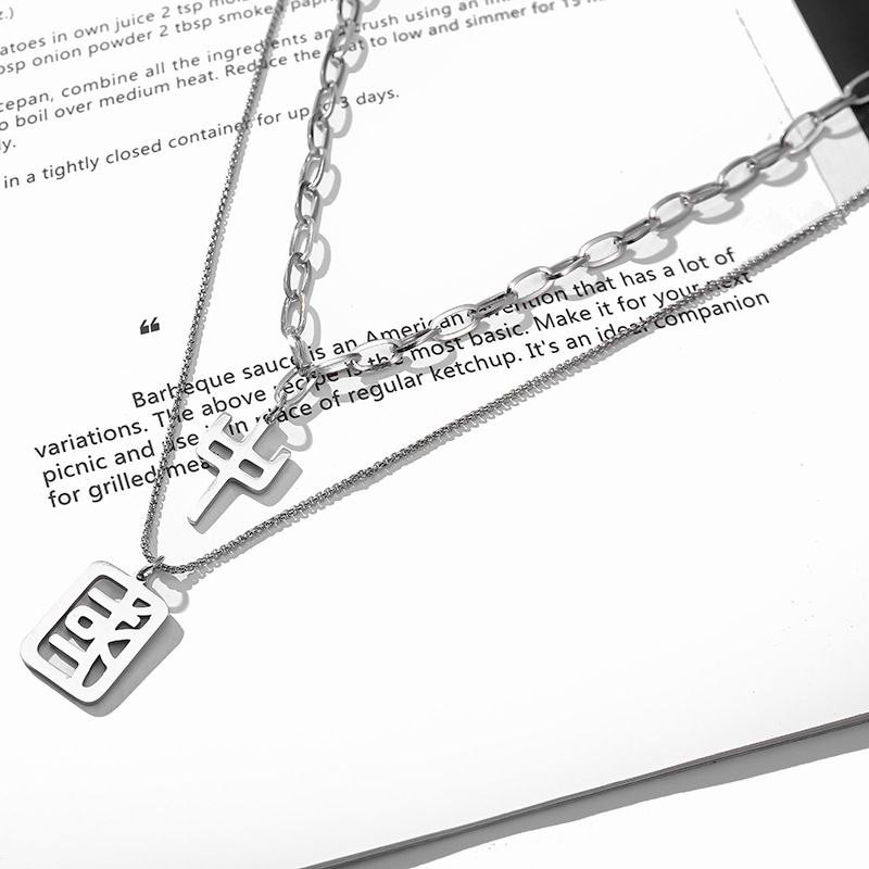 Collier en acier au titane Guochao Style chinois Mode Chandail à double couche Chaîne de chandail Tempérament Polyvalent Hommes et femmes