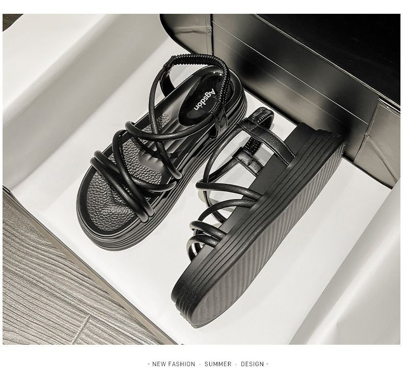 Sandales romaines pour femmes 2023 été nouveau style féerique chaussures de plage françaises à semelles épaisses chaussures à la mode à semelles plates