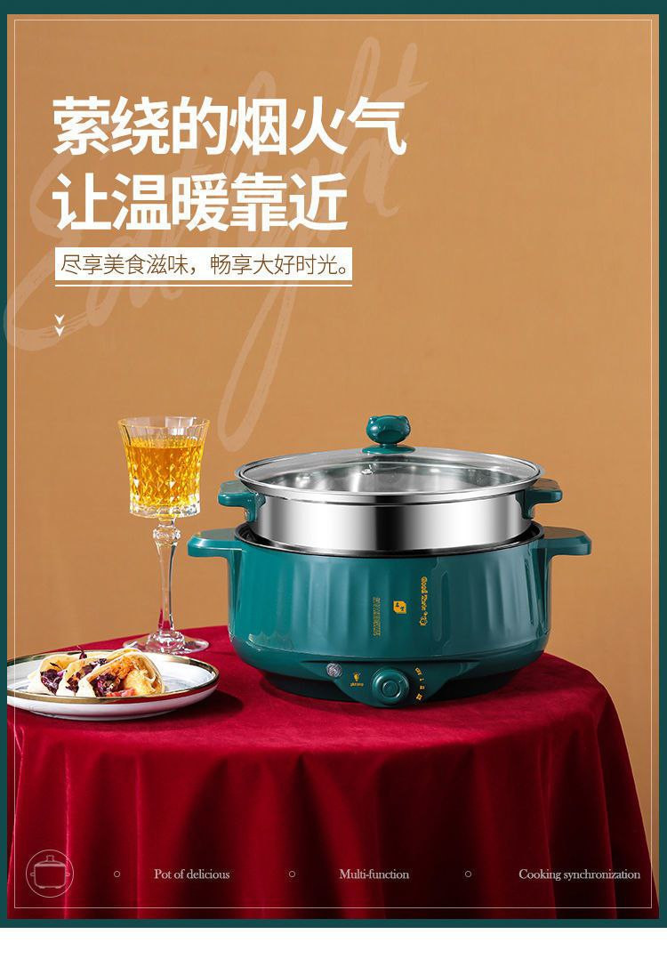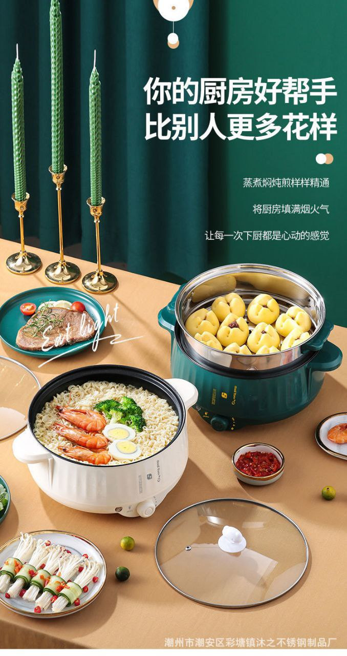 Marmite électrique pour dortoir étudiant, marmite tout-en-un pour cuire à la vapeur, frire et sauter, marmite antiadhésive, marmite électrique à emporter, cuiseur vapeur double couche
