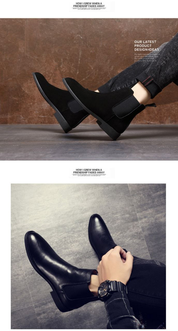 Bottes Chelsea à bout pointu, bottes Martin pour hommes, bottes en cuir véritable de style britannique de très grande taille prête à l'emploi