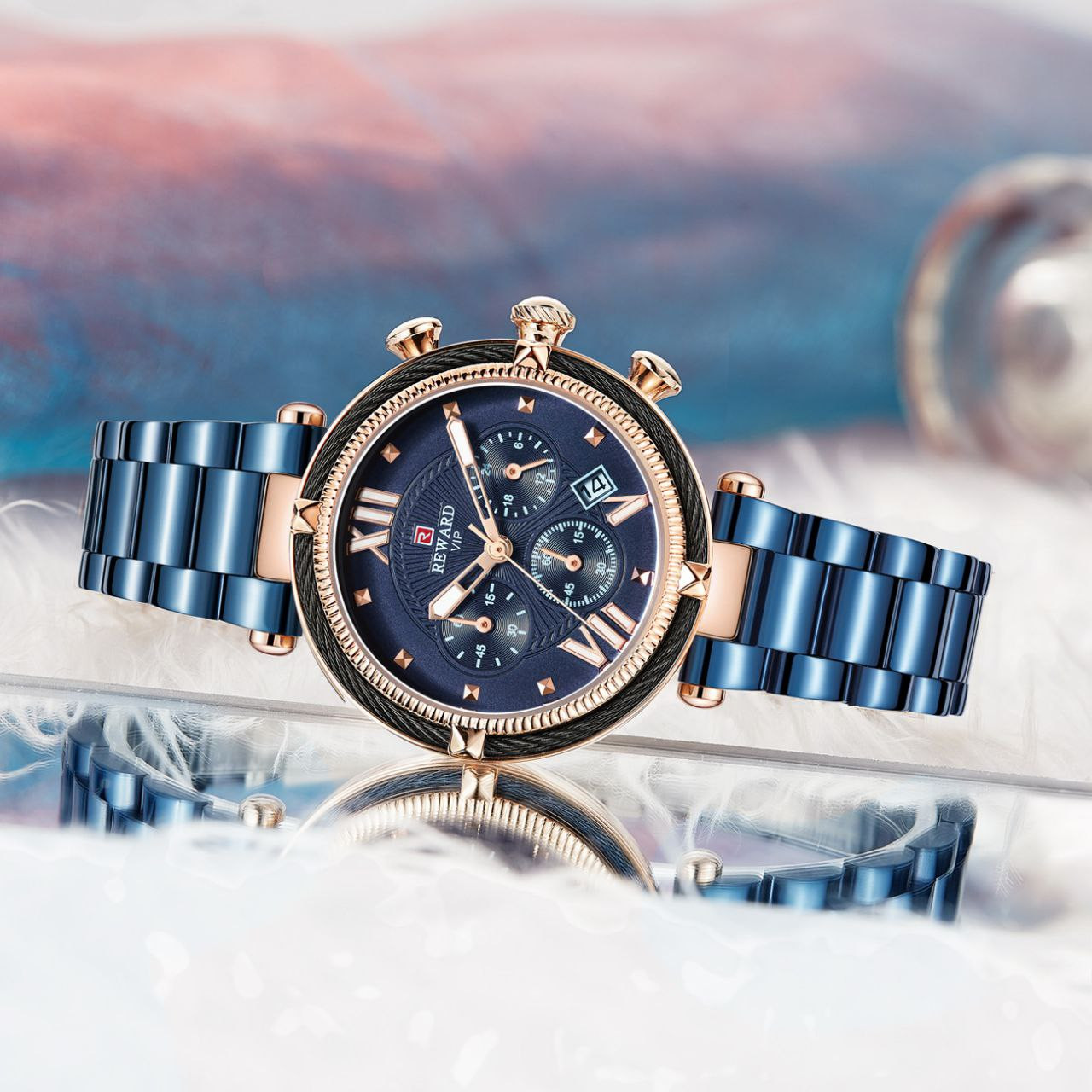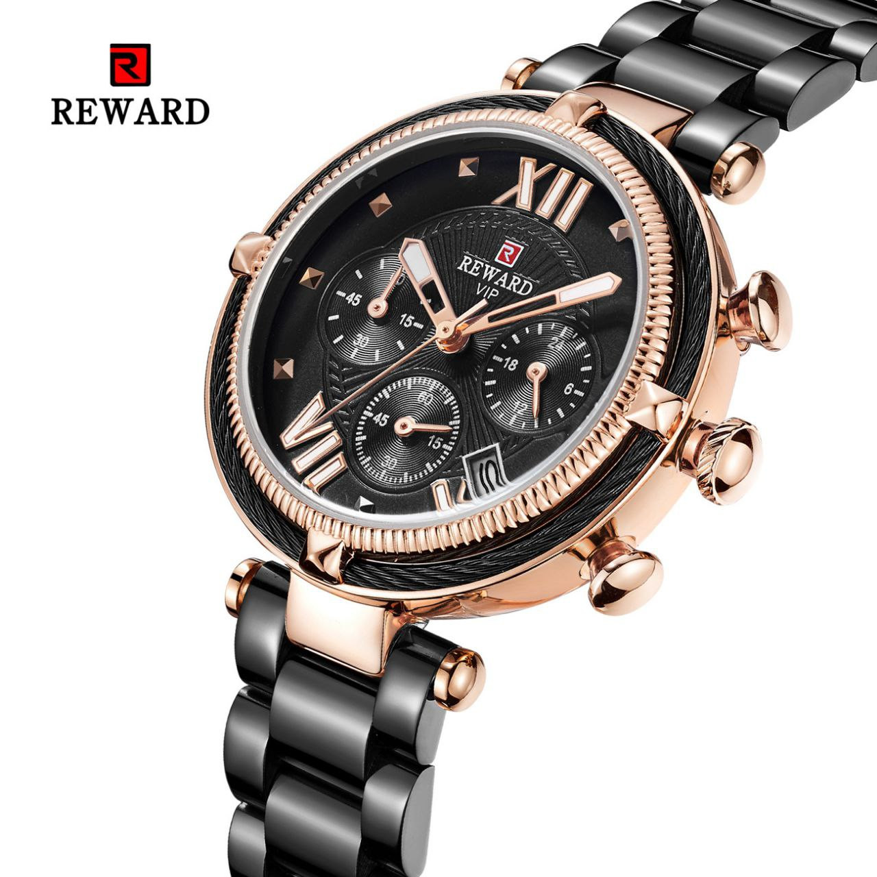 REWARD63084 montre pour femme montre à six broches montre à quartz étanche montre à bracelet en acier calendrier à la mode