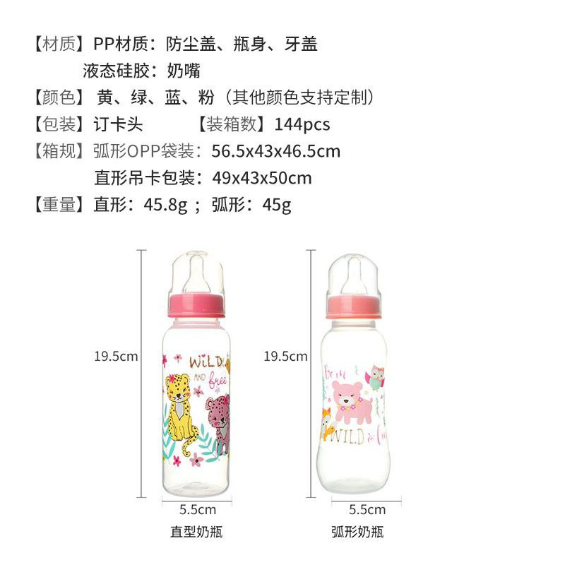 Produits pour mères et nourrissons biberon pour bébé en plastique de qualité alimentaire PP biberon pour nouveau-né anti-colique 250 ml diamètre standard