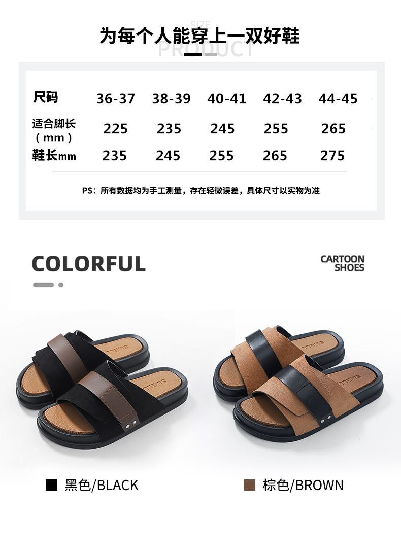 Pantoufles d'été décontractées en cuir nubuck EVA à semelles épaisses pour hommes, pantoufles d'affaires en un mot, nouveau style