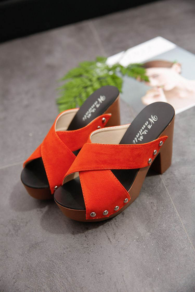 nouveau style bouche de poisson rivet sangle croisée talon haut talon épais fond épais sandales romaines pour femmes