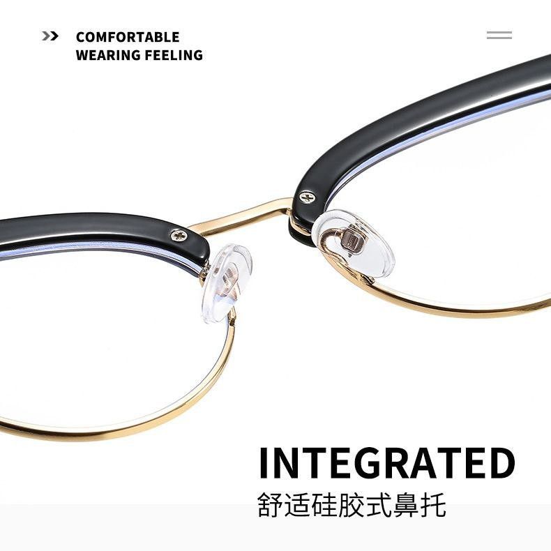 Nouvelle monture de lunettes anti-lumière bleue européenne et américaine, monture de lunettes transfrontalière pour femmes à miroir plat tendance à demi-monture personnalisée