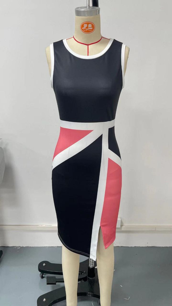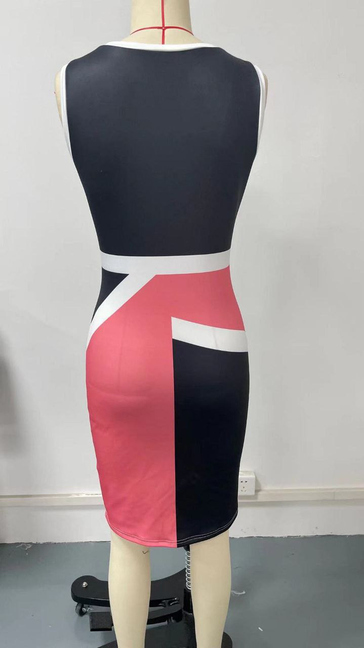 Robe de beauté mode col rond sans manches imprimé robe de hanche