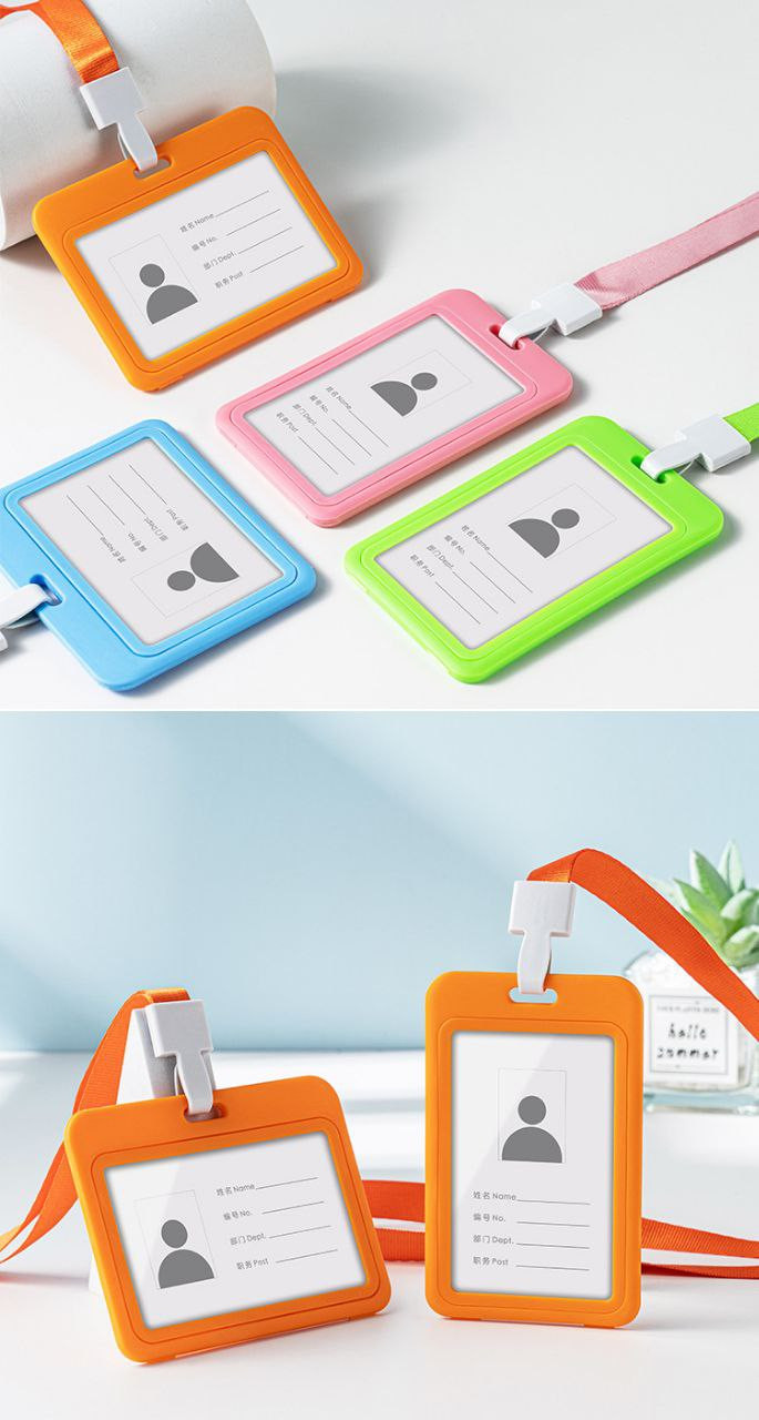 Film transparent double face badge de travail fixe porte-carte de conférence carte de travail à rabat carte de poitrine avec lanière