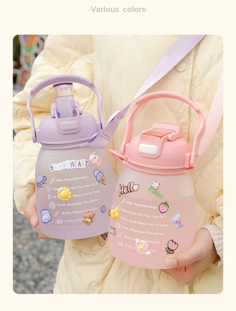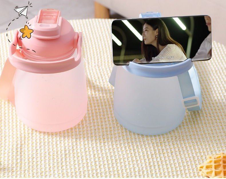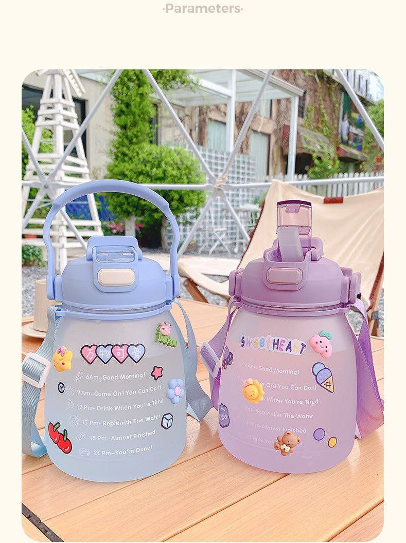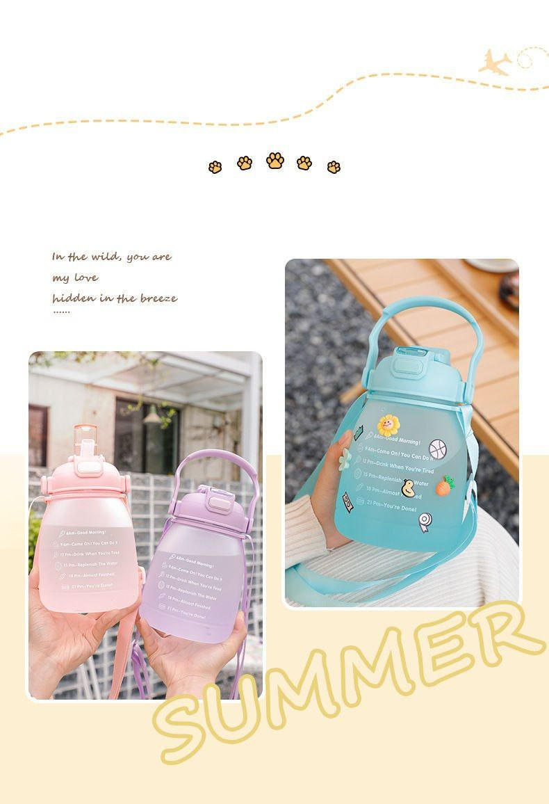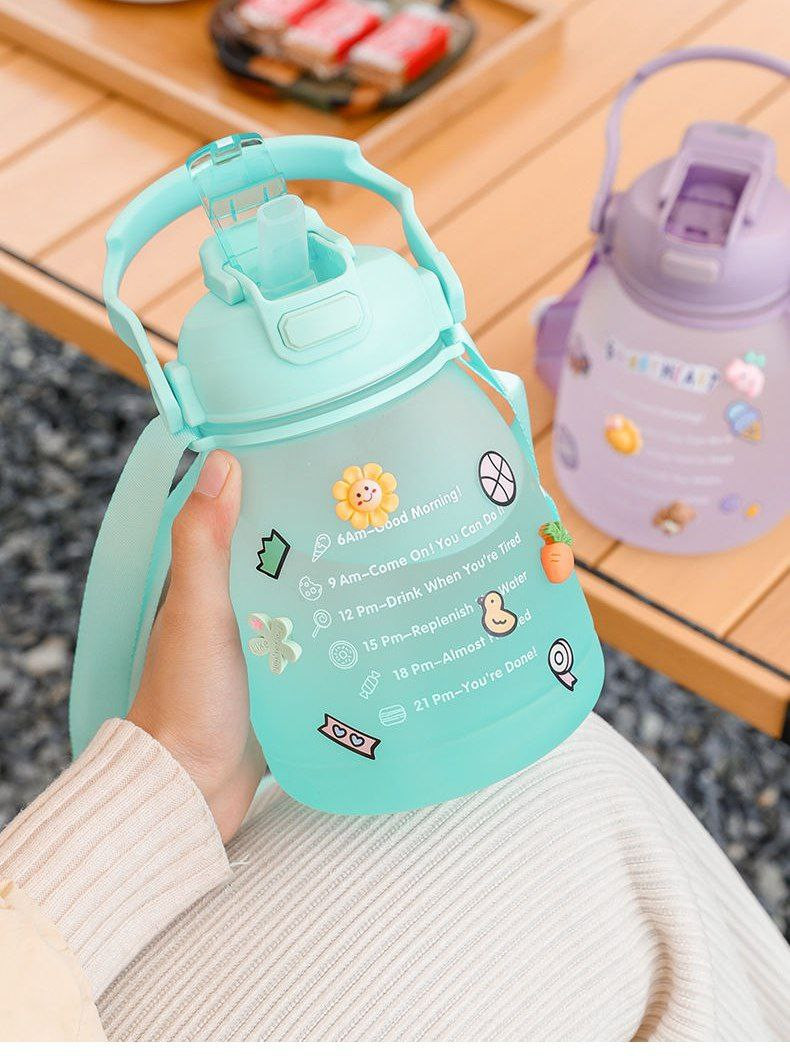 Gourde pot portable givré grande capacité bouteille d'eau en plastique paille double tasse à boire.