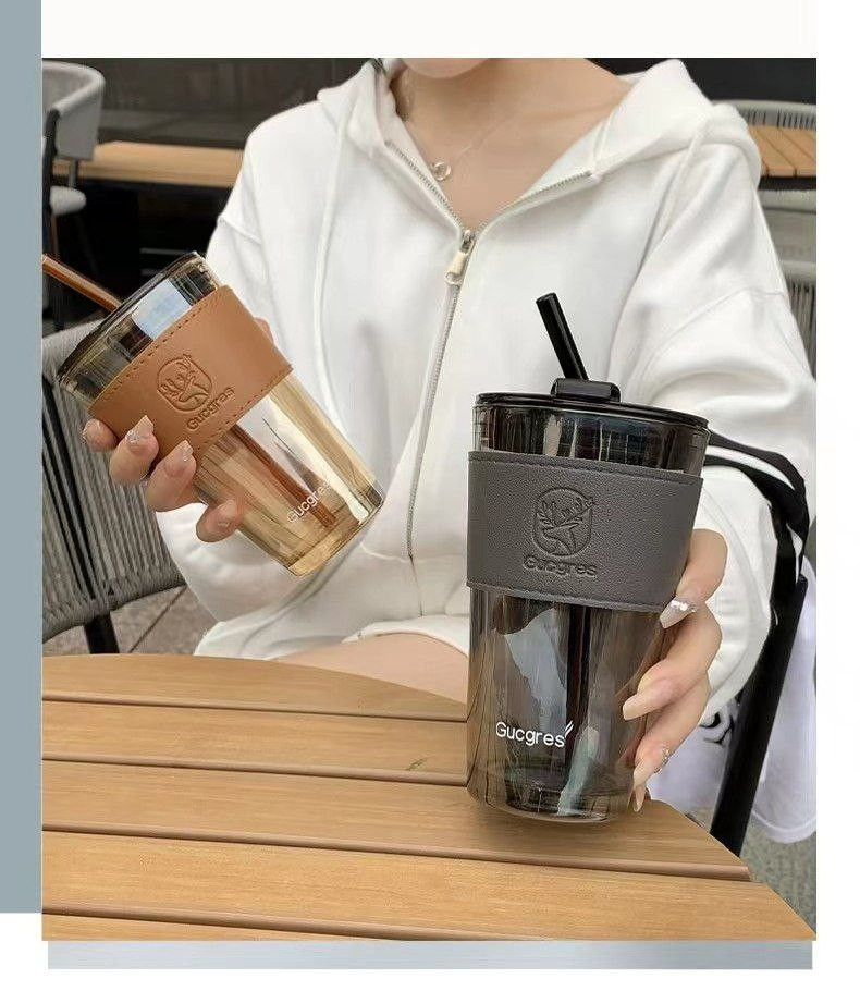 Tasse nouveau style femmes 2024 tasse en verre de paille haute aurores boréales tasse de paille avec couvercle tasse à café de bureau étudiant