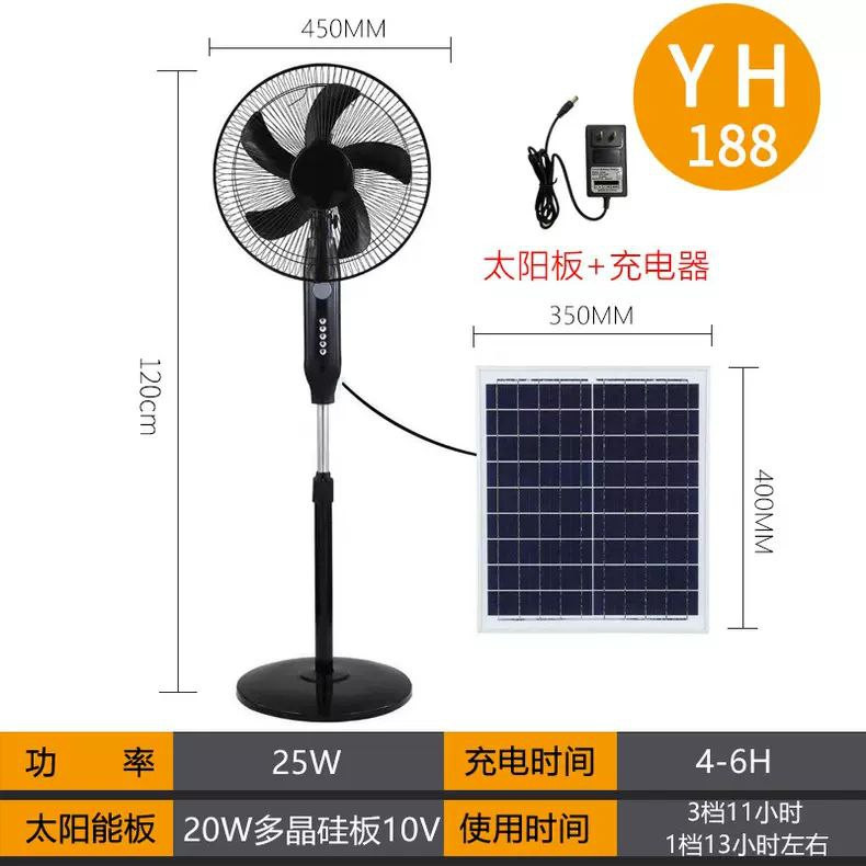Solarfan camping en plein air ventilateur rechargeable de 16 pouces sur pied rétractable ménage secouant la tête ventilateur vertical.