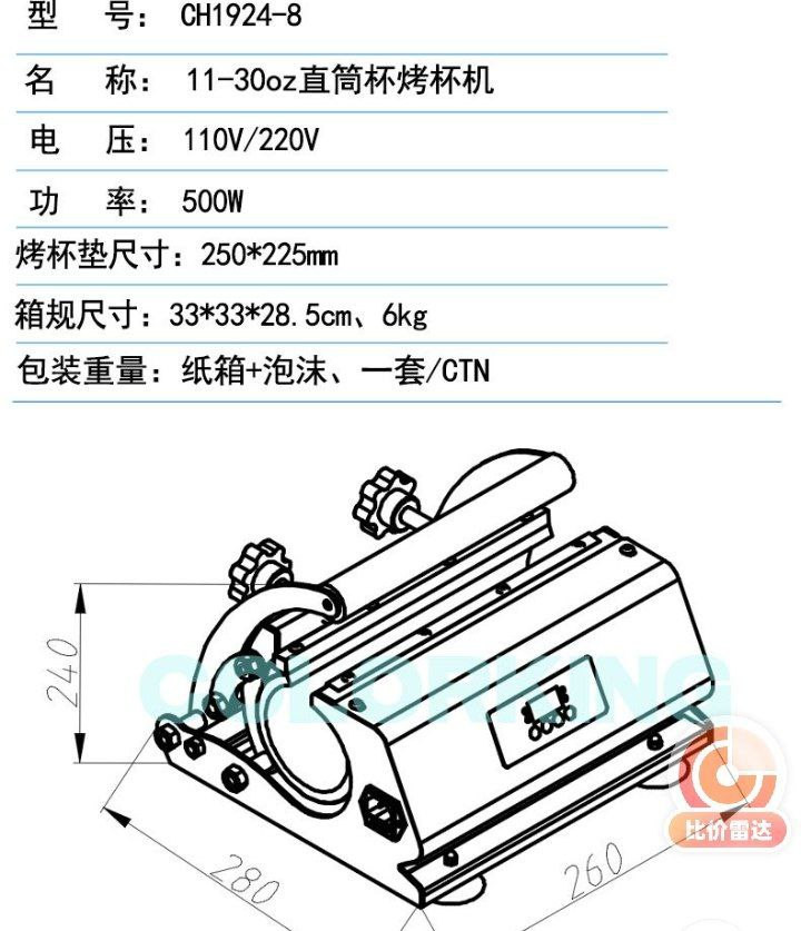 Machine de presse à chaud à tasse droite de 20/30 oz de version universelle de commerce électronique