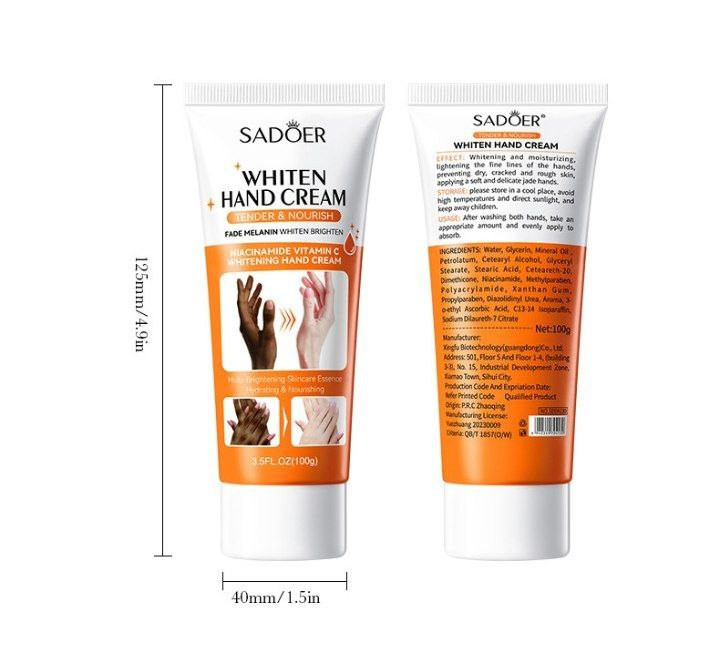 La crème blanchissante pour les mains SADOER hydrate les mains et prévient les gerçures Crème pour les mains 100g