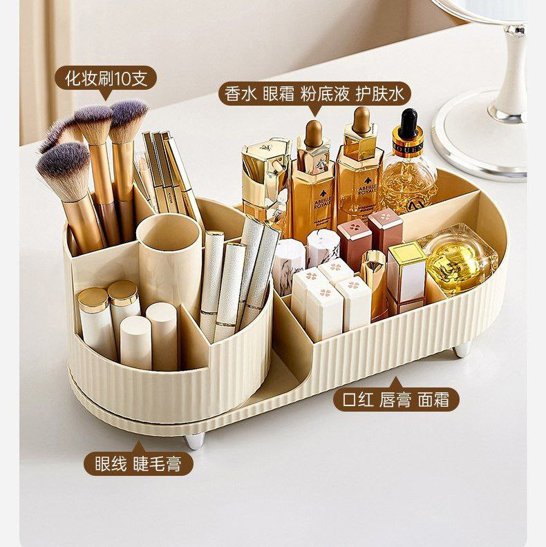Boîte de rangement cosmétique porte-stylo rotatif coiffeuse bureau grande capacité pinceau de maquillage rouge à lèvres ombre à paupières support de rangement pour bouffées de poudre