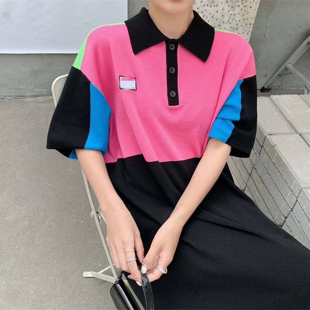 Col POLO ample de style coréen, robe tricotée mi-longue de couleur contrastée à la mode pour femmes, nouvelle saison
