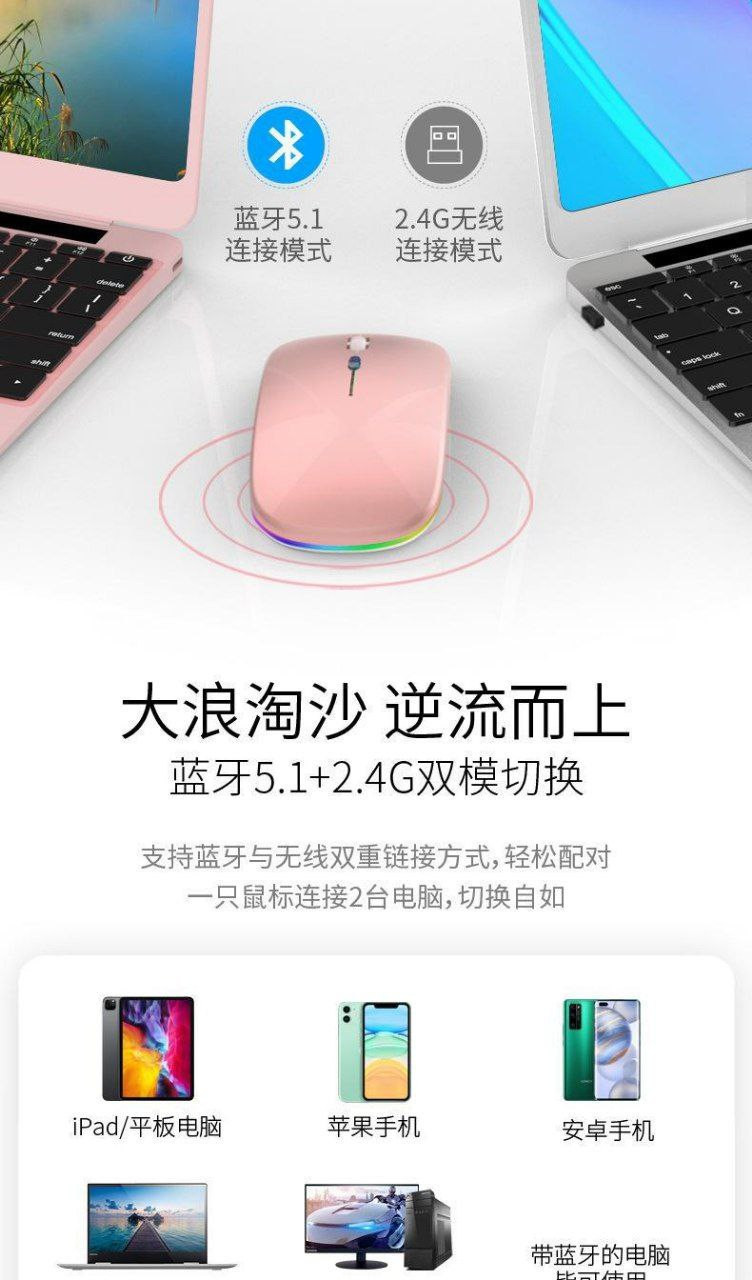 Nouvelle souris sans fil Bluetooth bimode transfrontalière chargeant un ordinateur silencieux ordinateur portable jeu de bureau souris 2.4G lumineuse