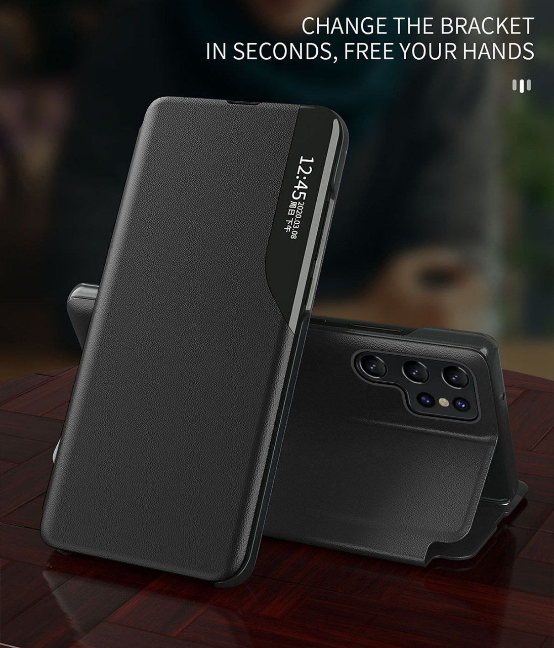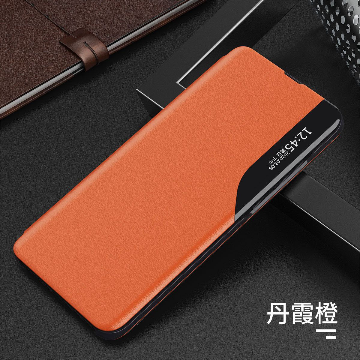 Etui de téléphone avec support magnétique à fenêtre latérale Samsung S23Ultra Note20, étui en cuir à rabat mince et anti-chute A53