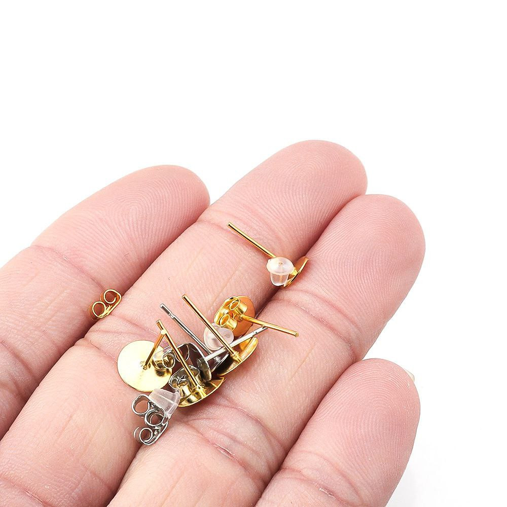 Coffret de boucles d'oreilles et bouchons d'oreilles à 10 grilles, boucles d'oreilles rondes plates, bouchons d'oreilles papillon en silicone, accessoires de bijoux faits main diy