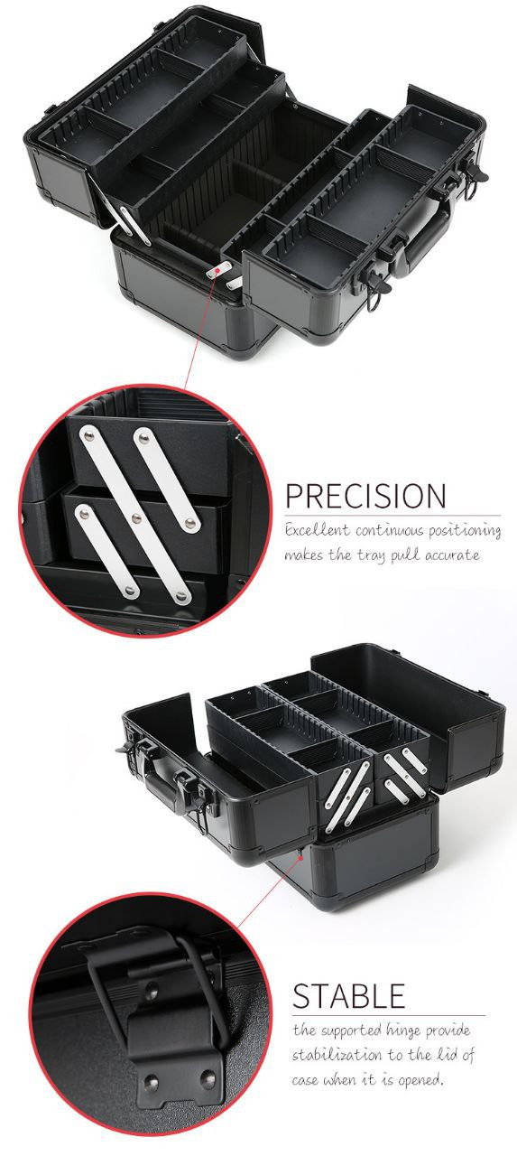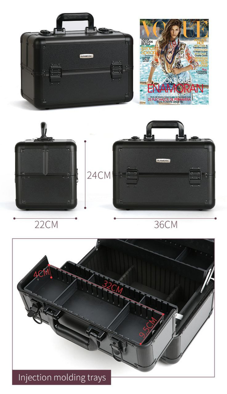 Tout nouveau coffret cosmétique de grande capacité en alliage d'aluminium véritable, boîte de tatouage et de manucure, boîte à outils de tatouage et de broderie à plateau multicouche