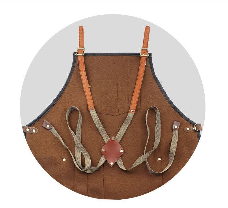 Tablier de travail en cuir PU, barista, barbier, vêtements de travail, restaurant, tablier en cuir floral, tablier de barbier