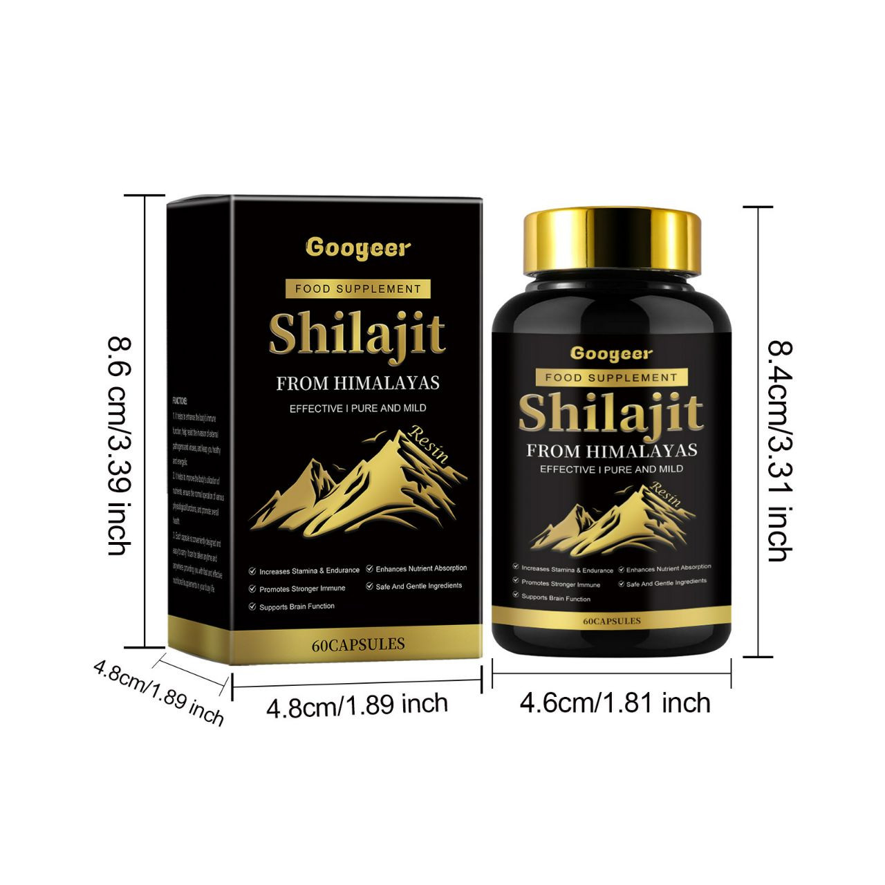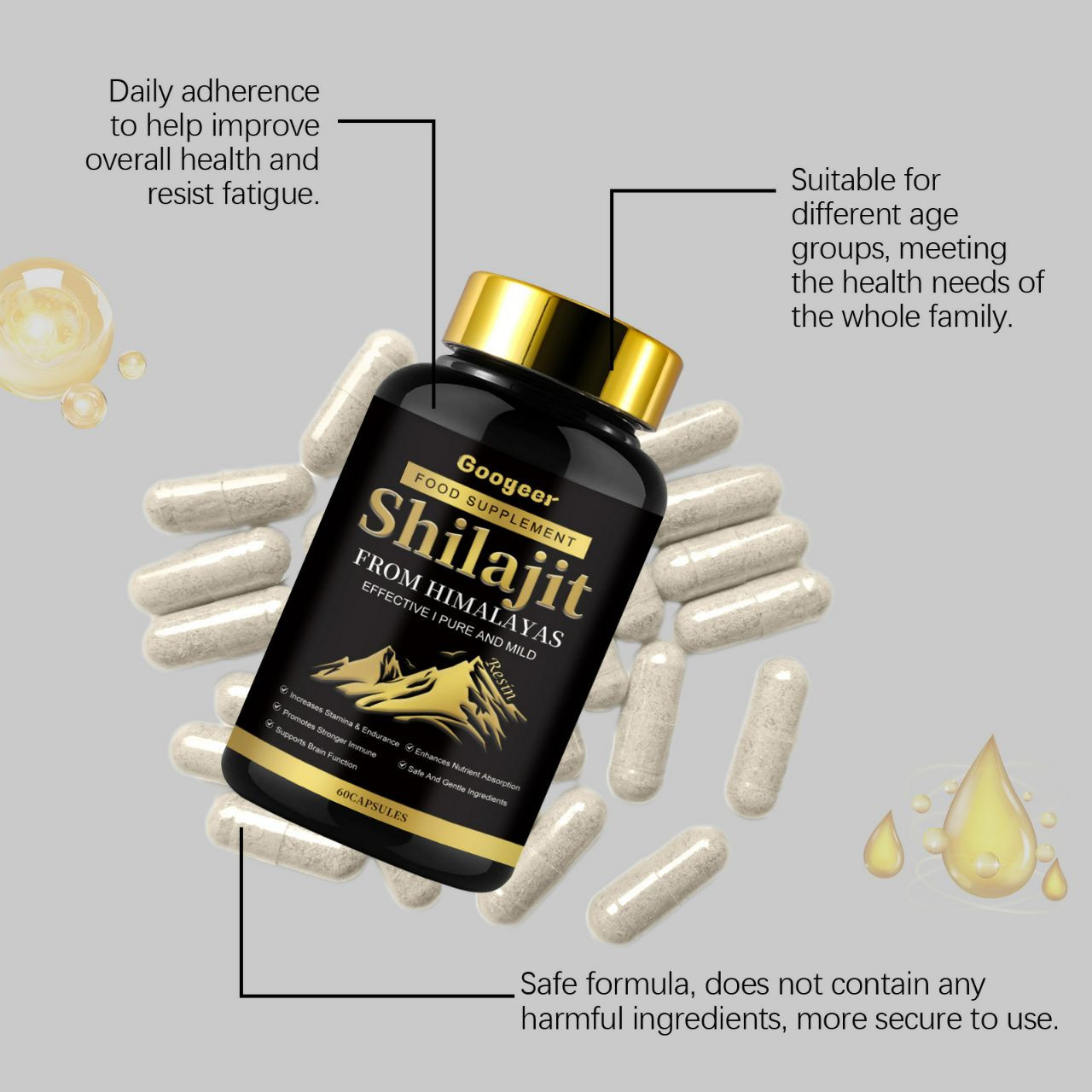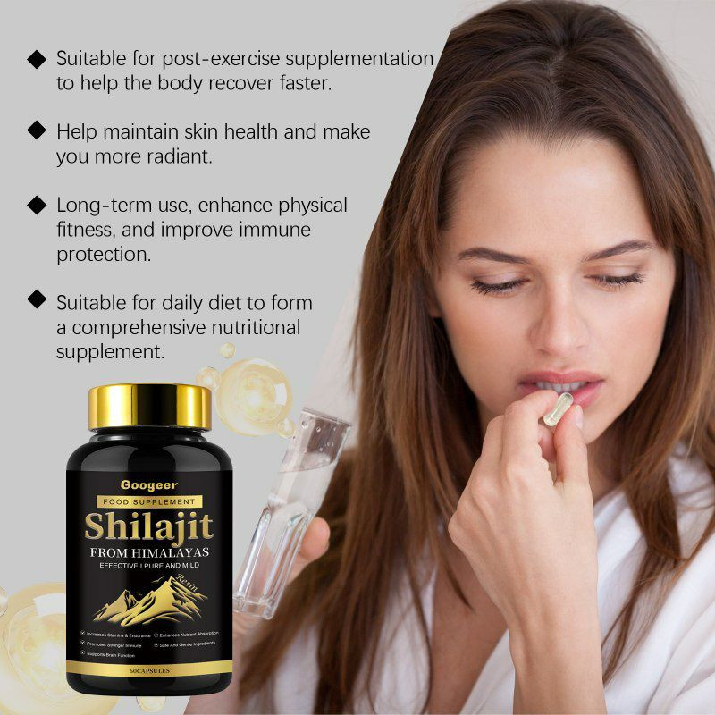 Capsule d'extrait de Shilajit naturel et biologique pour. hommes et femmes complément alimentaire traitement corporel