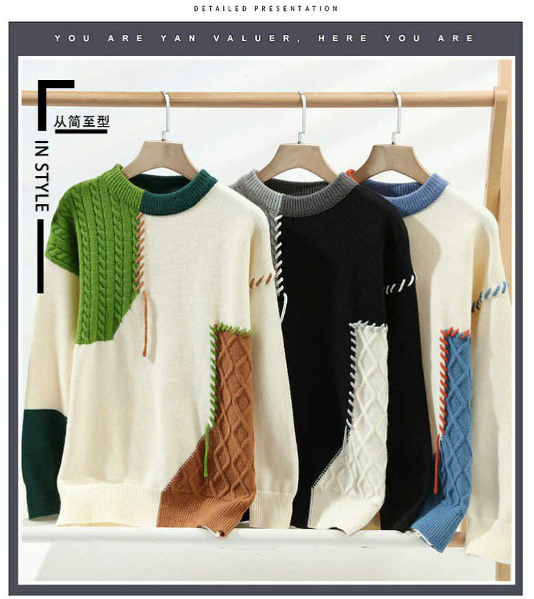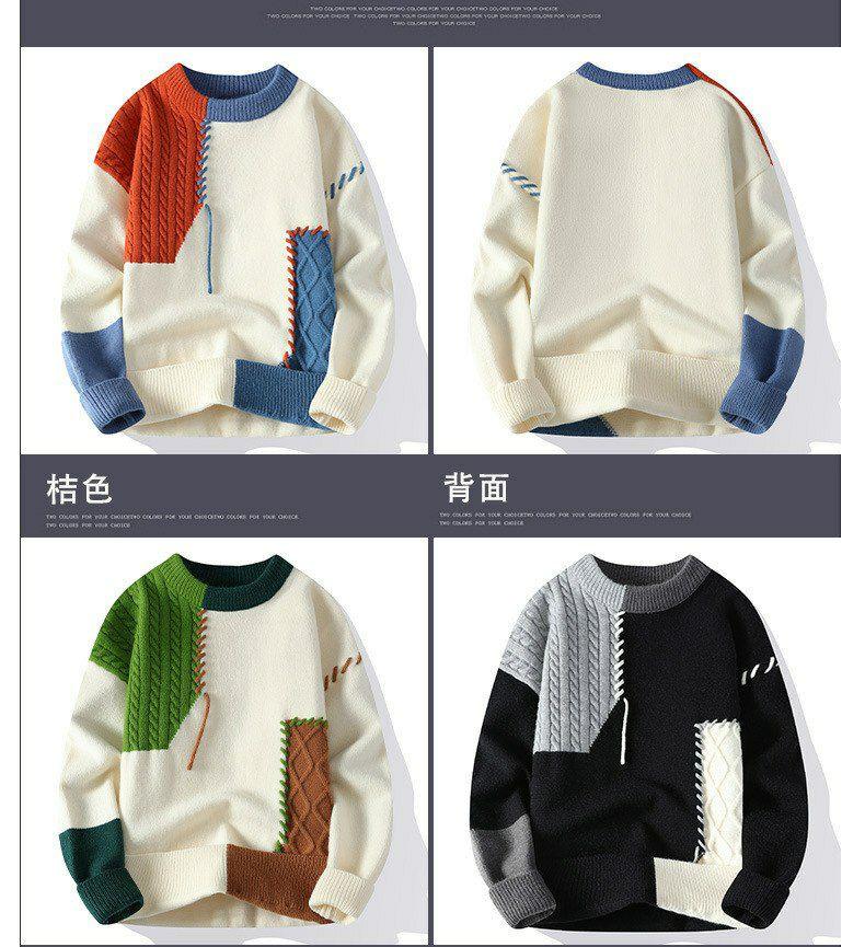 Nouveau Pulls en tricot patchwork col rond de style décontracté Base  pull en tricot, vêtements pour hommes