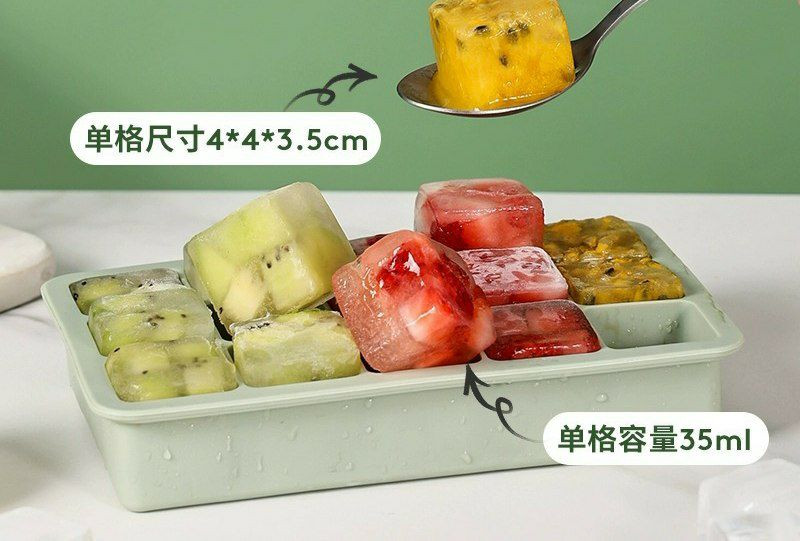 Bacs a glaçon avec couvercle en silicone, glace Grid Ice Cube Moule facile à libérer complémentaire Grille avec couvercle Silicone Baby Ice Box