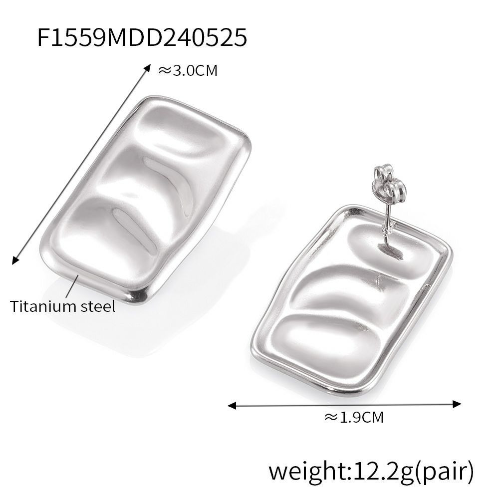 Boucles d'oreilles en acier inoxydable pour femmes, Puces d'oreilles martelées rectangles froissés, grosses boucles d'oreilles en or, boucles d'oreilles audacieuses