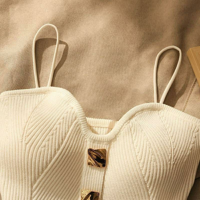 Débardeur tricoté Sexy pour femmes, Camisole à bretelles, bas Slim, haut Bandeau, haute élasticité, col en V, haut court sans manches