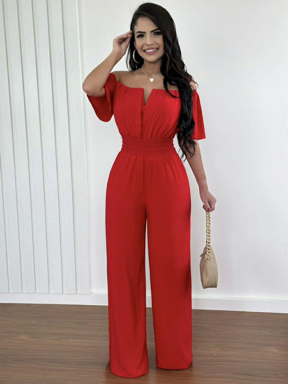 Combinaison longue pour femmes, mode épaules dénudées décontracté plaine manches courtes taille froncée quotidien longue jambe large combinaison 2025
