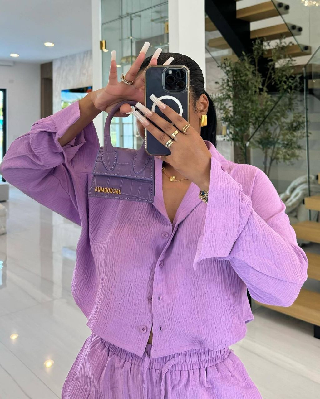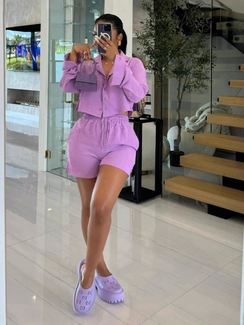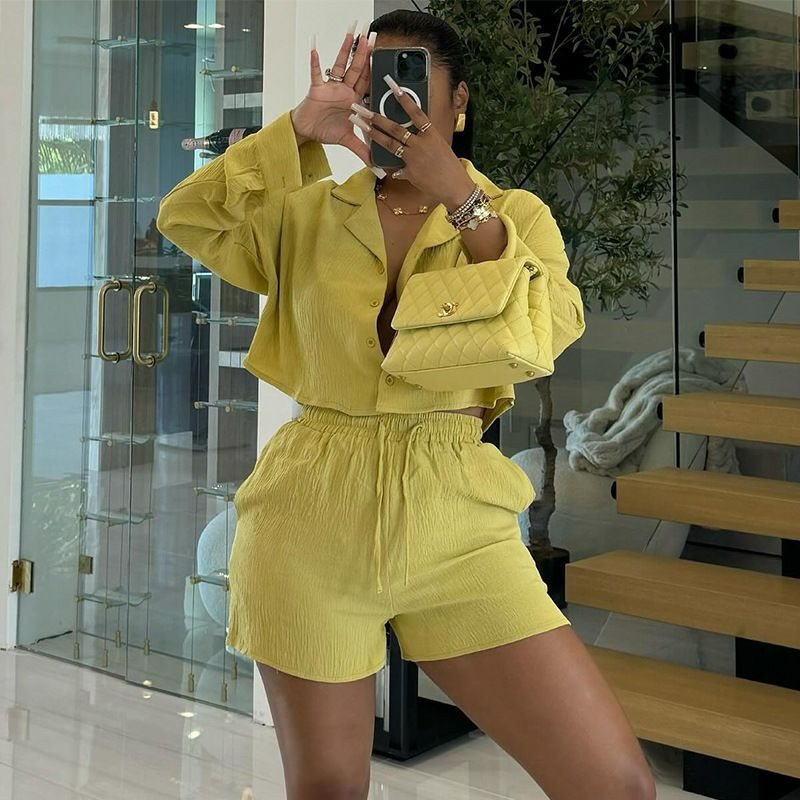Ensemble de 2 pièces tendance, class, sexy décontracté de haut manche longue et short culotte court de la mode féminine, couleurs solides à manches longues, avec col et cordon