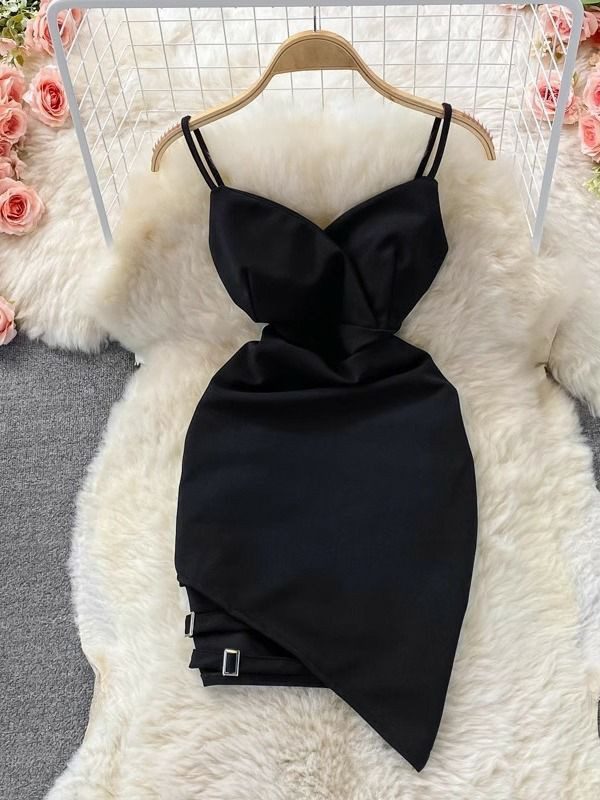 Robe de soirée taille haute, Slim, sans manches, bretelles solides, Mini robe dos nu, col en v, Sexy, été