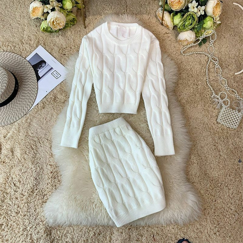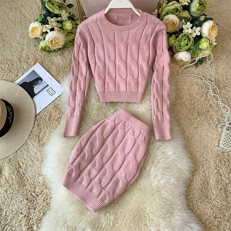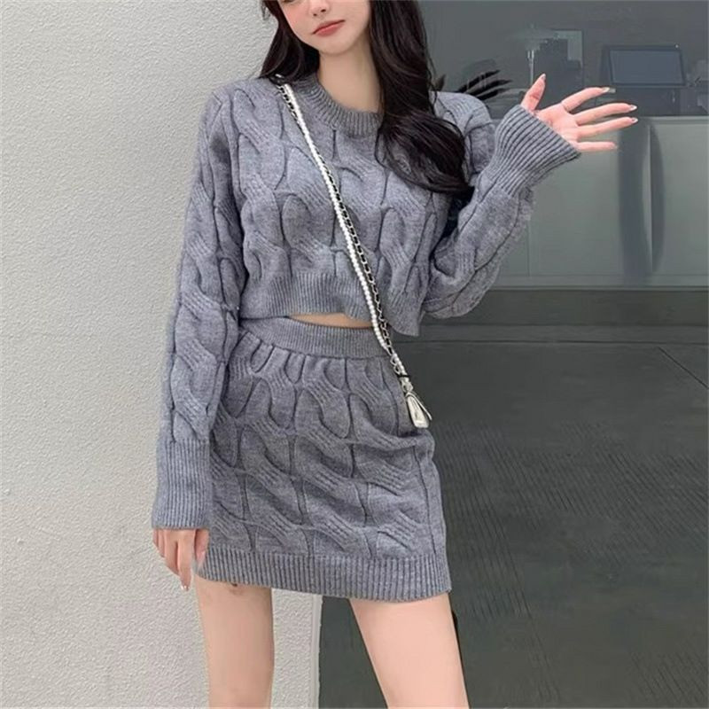 Ensemble de vêtements Tricoté 2 Pièces pour Femmes, Couleur Unie, Col Rond, Manches Longues, Pull Court, Mini Jupe sexy, class, décontracté, tendance