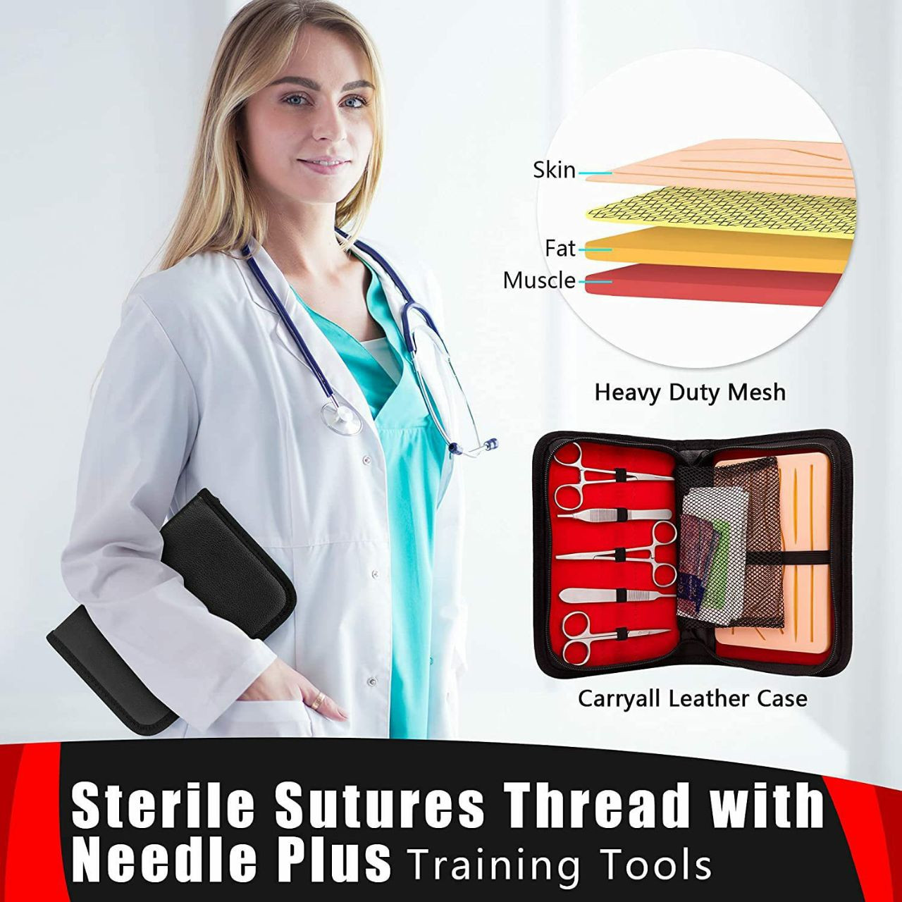 kit complet de pratique de suture pour l'entraînement à la suture comprenant un grand tampon de suture en silicone avec des plaies prédécoupées, 14 morceaux d'outils d'anatomie biologique, ciseaux d'aiguille en acier inoxydable, équipement expérimental, outils, sondes, ciseaux et pinceaux d'instruments d'enseignement