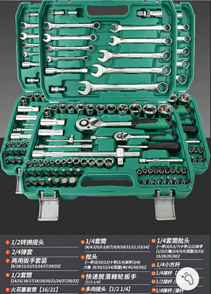 Boite a outils de réparation automatique ou kit de réparation de voiture, ensemble d'outils d'emballage, cliquet, ensemble de douilles.