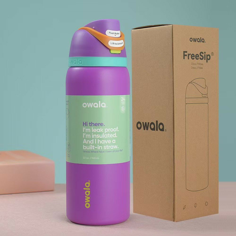 Owala thermos bouteille d'eau isotherme en acier inoxydable avec ouverture FreeSip et couvercle à bouton-poussoir