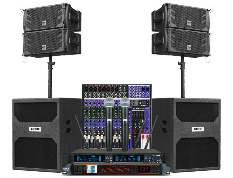 Marque et Type : Le système est de la marque GODI (高迪音响), et il s'agit d'un ensemble d'enceintes de ligne active étanches de 10 pouces.