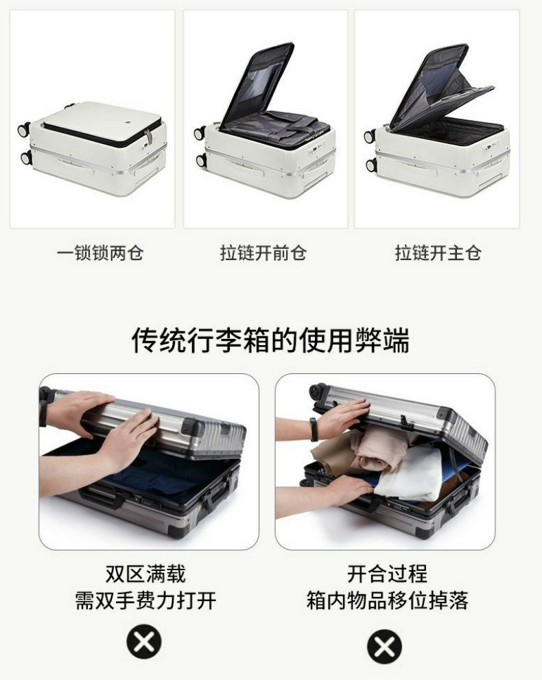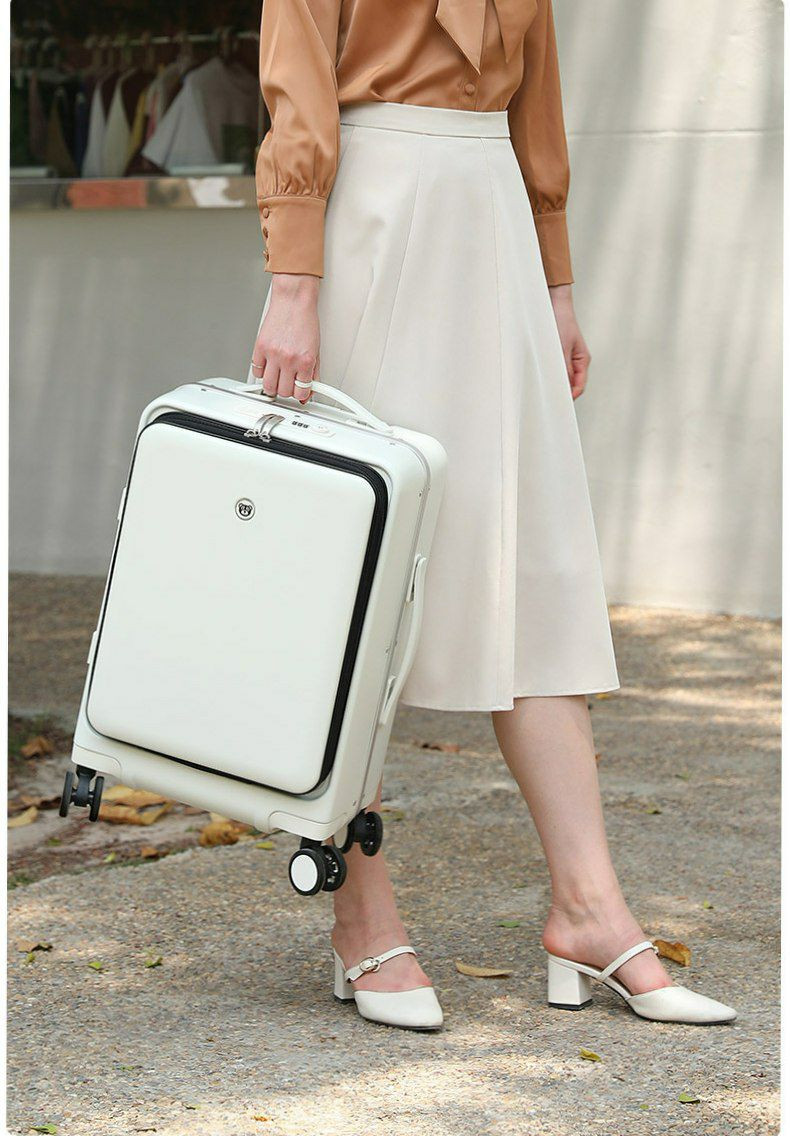 Valise multifonctionnelle, valise trolley rechargeable, avec un compartiment frontal à ouverture rapide. Valise d'embarquement à ouverture frontale
