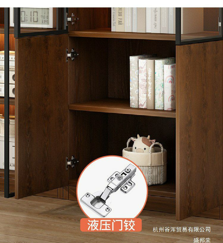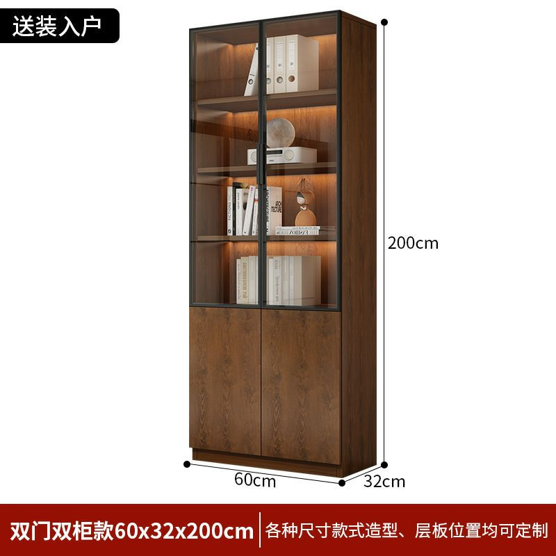 Armoire haute avec porte en verre intégrée, vitrine murale, lumière de salon, Psychde luxe Bibliothèque couleur noyer, maison de luxe, salon, bois massif, étagère murale intégrée