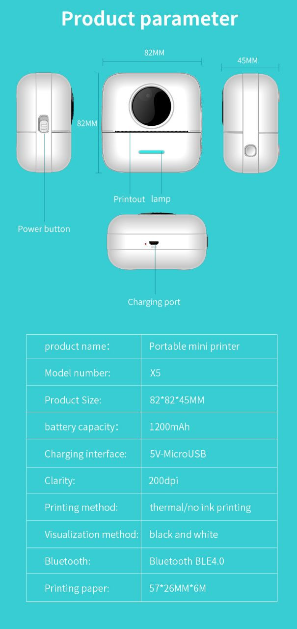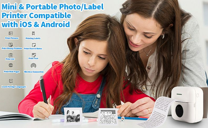 La mini-imprimante thermique de poche. se connecte sans fil au téléphone portable Bluetooth, une petite imprimante photo intelligente sans encre pour la maison