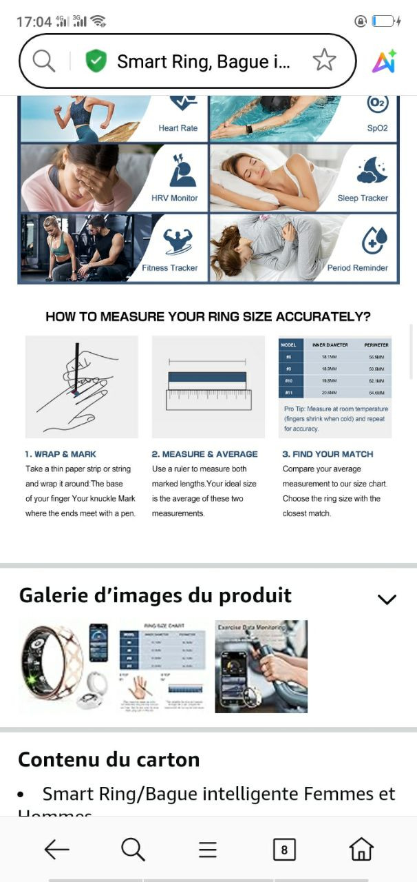 Smart Ring, Bague intelligente pour fréquence cardiaque, sang oxygène sommeil exercice podomètre surveillance étanche multifonction pour Femmes et Hommes,