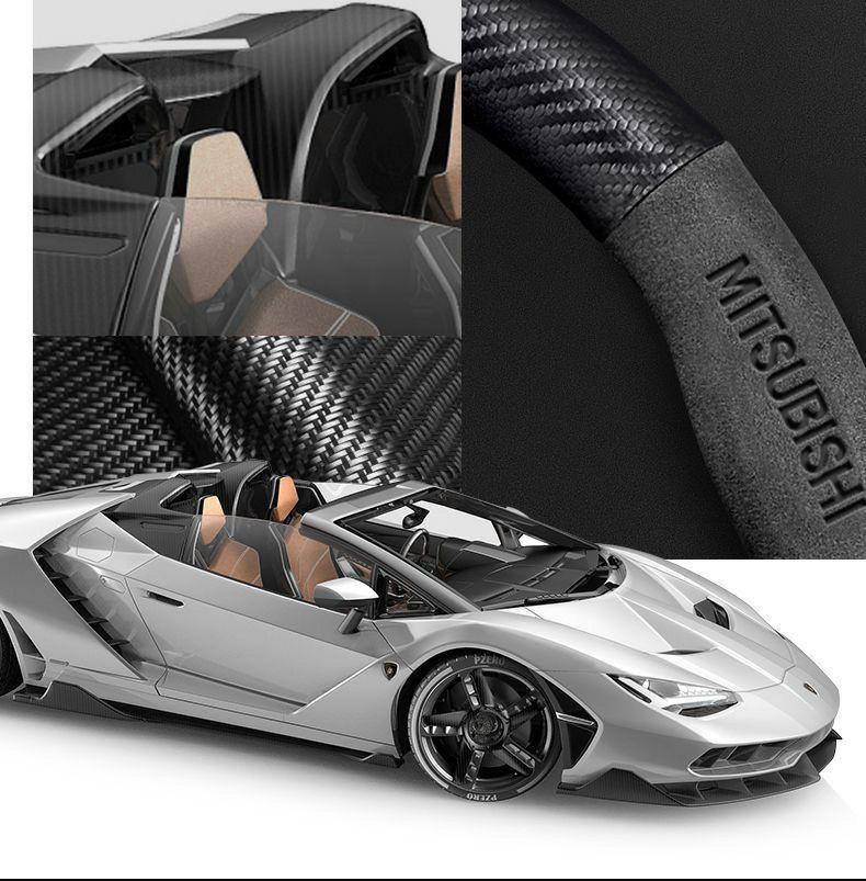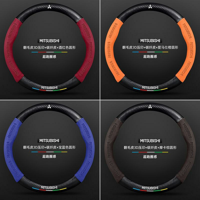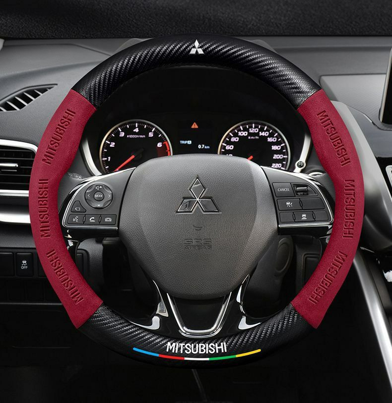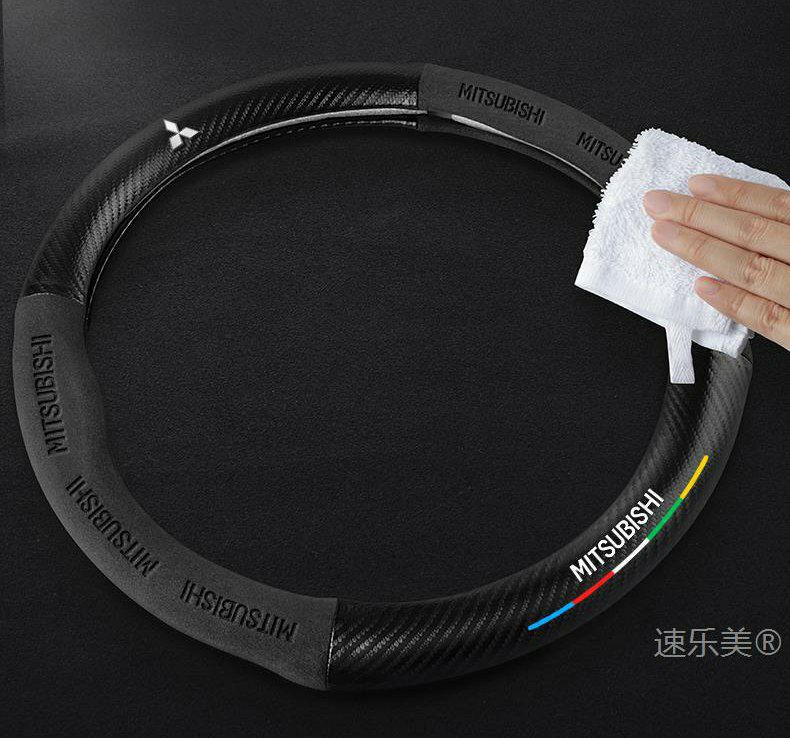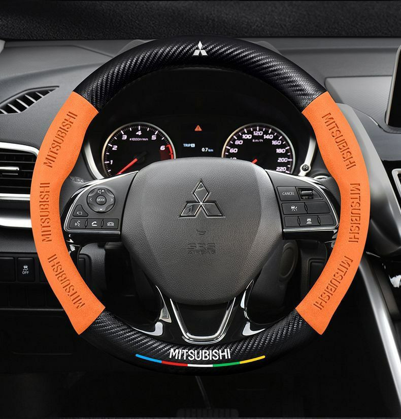 Couvre-volant en fibre de carbone et daim pour véhicules Mitsubishi.