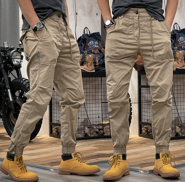 Automne nouvelle salopette rétro américaine hommes taille élastique multi-poches lâche leggings décontractés pour hommes Grande taille