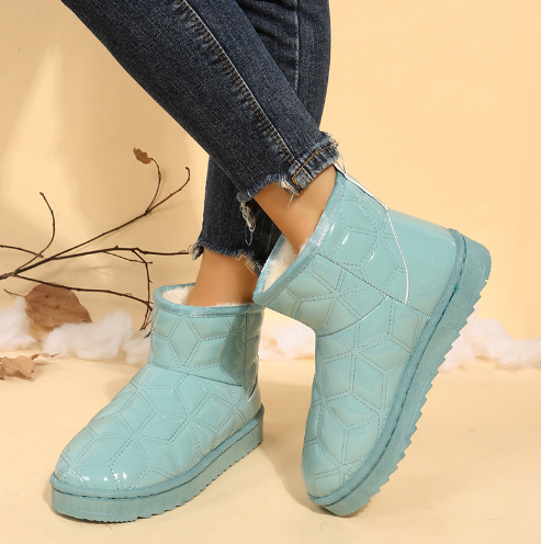Bottes de neige pour femmes - couleur solide à carreaux et velours - bottes en coton à mi-mollet - fond souple - chaussures en coton antidérapantes - femmes